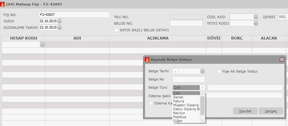 E-Defterle birlikte iş akışımızda bazı değişiklikler oldu bunlardan birincisi Belge Detayı yani düzenlenmiş olan her muhasebe fişine ait belgenin ayrıca detaylarının yazıldığı bir ortam diyebiliriz.
